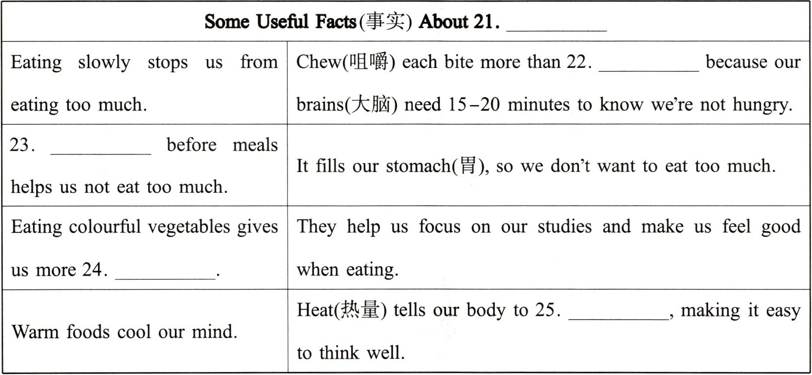 四、听短文,根据短文内容完成所缺信息。短文念三遍。