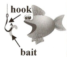 | A cat went to the river and tried to catch fish with his paws(爪子), but didn't make it. Then he saw a fisherman using a hook and bait. The cat did like the fisherman and waited. Soon, a fish bit his hook.