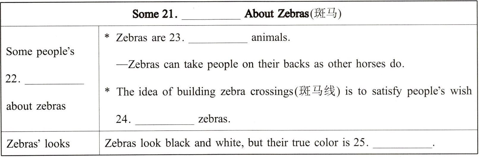 21. 短文围绕斑马的一些信息展开,“information”(信息)符合语境。