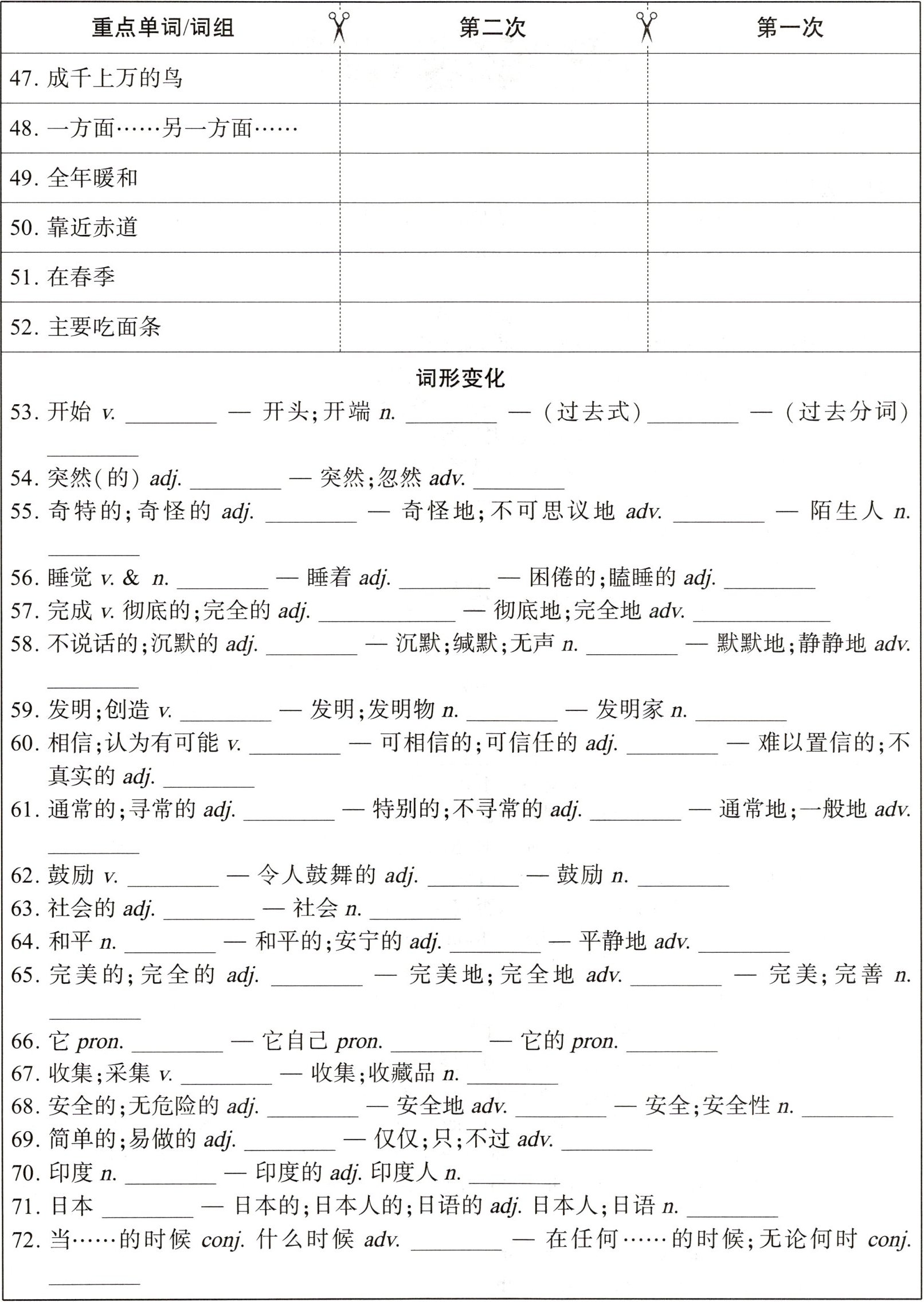 57. “完成”动词是“complete”,“彻底的;完全的”形容词是“complete”,副词“彻底地;完全地”是“completely”。