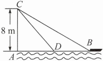 17.如图,在离水面高度为 8 m 的岸上,有人用绳子拉船靠岸,开始时绳子 BC 的长为 17 m,此人以 1 m/s 的速度收绳,7 s 后船移动到点 D 的位置,问船向岸边移动了多少米?(假设绳子是直的)