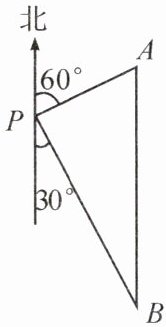 5. 如图,一艘轮船位于灯塔$P的北偏东60^{\circ}$方向,与灯塔$P的距离为30\ \text{n mile}的A$处,轮船沿正南方向航行一段时间后,到达位于灯塔$P的南偏东30^{\circ}方向上的B$处,则此时轮船所在位置$B处与灯塔P$之间的距离为 ()