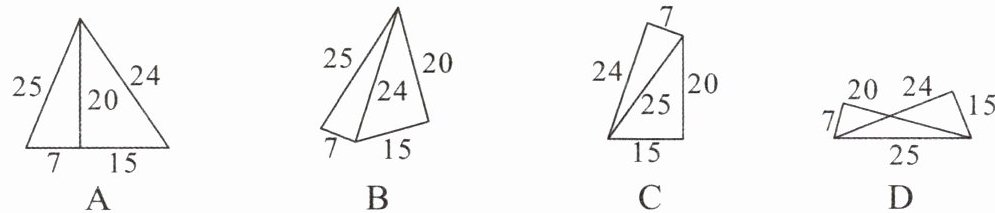 6. 有五根小木棒,其长度分别为7,15,20,24,25,现将它们摆成两个直角三角形,其中正确的是 ()