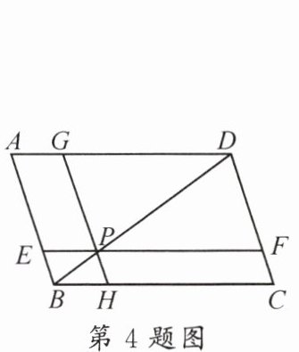 4. 如图,在 $\square ABCD$ 中,$EF// BC$,$GH// AB$,$EF$,$GH$ 的交点 $P$ 在对角线 $BD$ 上,图中面积相等的平行四边形有 ()
