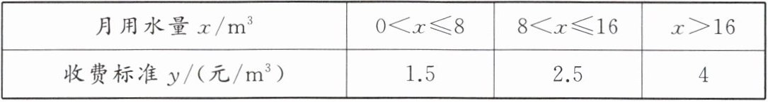 (1) 存在两个变量: 月用水量 $ x $ 和收费标准 $ y $, 对于 $ x $ 每取一个值, 都有唯一确定的 $ y $ 值与之相对应, 符合函数的定义, $ \therefore y $ 是关于 $ x $ 的函数