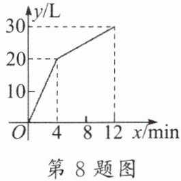8. 一个有进水管和出水管的容器,从某时刻开始4min内只进水不出水,在随后的8min内既进水又出水,每分钟的进水量和出水量是两个常数,容器内的水量y(单位:L)与时间x(单位:min)之间的关系如图所示,则每分钟的出水量为____.