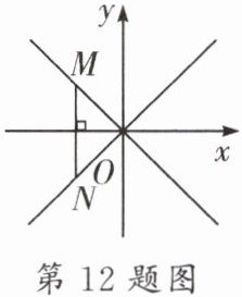 12. 如图,在平面直角坐标系中,点$M是直线y = - x$上的动点,过点$M作MN \perp x$轴,交直线$y = x于点N$.当$MN \leq 8$时,设点$M的横坐标为m$,则$m$的取值范围为____.