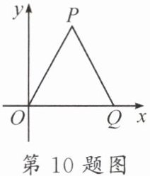 10. 如图,$\triangle OPQ是边长为2$的等边三角形,若正比例函数的图象过点$P$,则它的解析式是____.