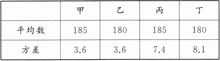 4. 如表记录了甲、乙、丙、丁四名跳高运动员最近几次选拔赛成绩(单位:cm)的平均数与方差.