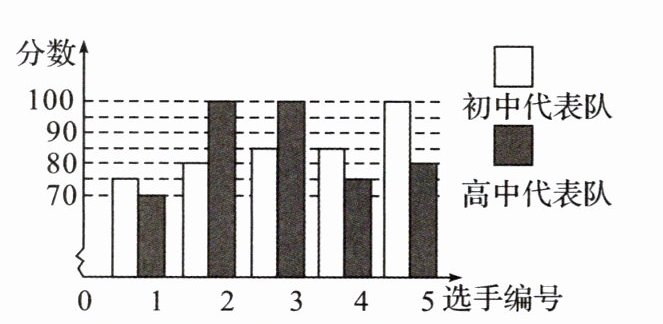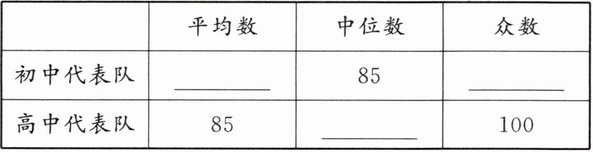 (1)初中代表队:平均数 85,众数为 85;高中代表队:中位数为 80