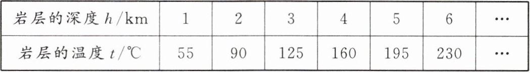 (2)岩层的深度$h每增加1km$,温度$t$是怎样变化的?试写出岩层的温度$t与它的深度h$之间的解析式;