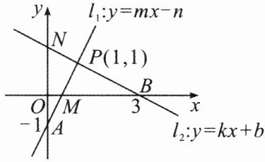 (4)若直线$l_{1}分别交x$轴、$y轴于点M,A$,直线$l_{2}分别交x$轴,$y轴于点B,N$,求点$M的坐标和四边形OMPN$的面积.