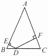 17. 如图,已知等腰三角形ABC中,$AB= AC$,D是BC边上的一点,$DE⊥AB,DF⊥AC$,点E,F分别为垂足.$DE+DF= 2\sqrt {2},△ABC的面积为3\sqrt {2}+2\sqrt {6}$,求AB的长.