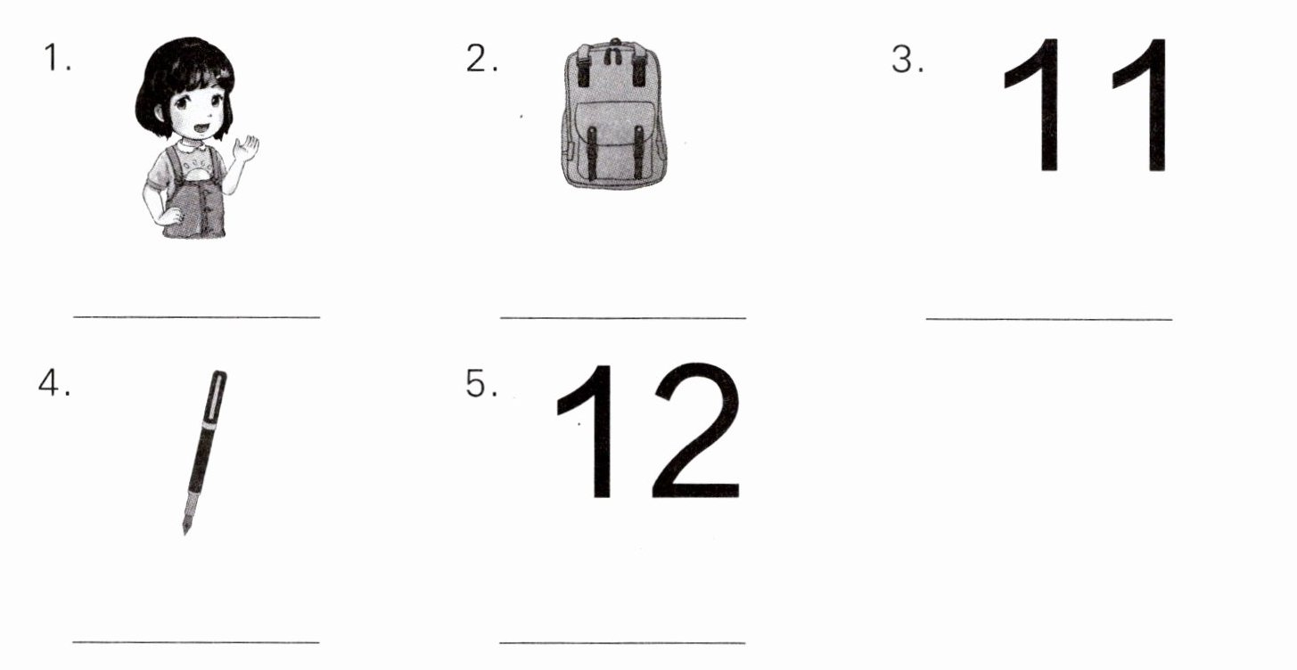 1.girl 2.bag 3.eleven 4.pen 5.twelve