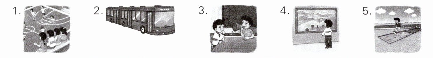 F. piano G. badminton H. jeep I. classroom J. guitar