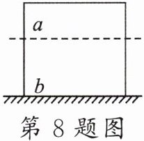 8. 边长为 $12cm$ 的均匀正方体,重为 $72N$,放在水平桌面中央,则正方体对桌面的压强为______ $Pa$;如图所示,若沿水平方向截下一部分 $a$ 立放在水平桌面上,且使 $a$ 对桌面压强为剩余部分 $b$ 对桌面压强的 $1.5$ 倍,则剩余部分 $b$ 的高度为______ $cm$。