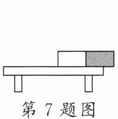 7. 如图所示,质地均匀的长方体重 $7N$,放在水平桌面上,它与桌子的接触面积为 $0.01m^{2}$,则它对桌面的压强为______ $Pa$;竖直切除该物体右边的阴影部分,剩余部分对桌面的压强会______(选填“变小”“不变”或“变大”)。
