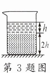 3. 如图所示,装有两种不同液体的烧杯置于水平面上,两液体没有混合。上层液体的高度为h,密度为0.8ρ;下层液体的高度为2h,密度为ρ。则液体对烧杯底部的压强为()