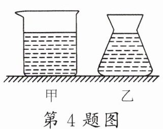 4. 如图所示,水平桌面上放着底面积相等的甲、乙两容器,分别装有同种液体且深度相同,两容器底部所受液体的压力、压强分别用$F_{甲}、$$F_{乙}、$$p_{甲}、$$p_{乙}$表示,则()