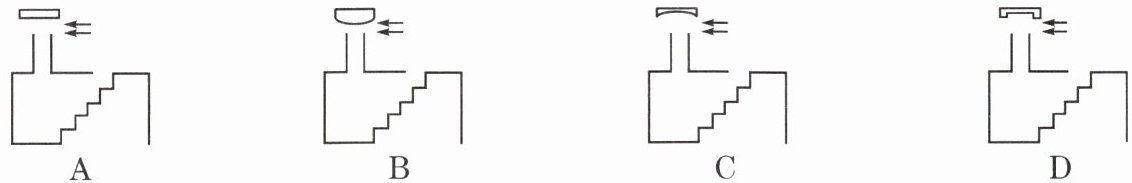 1. 为改善地铁地下车站的通风状况,小明设计了抽气管道,利用地面横风实现自动抽气。为提高抽气效果,管道上方遮雨盖的形状应设计成下列图中的()