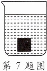 7. 如图所示,一个棱长为10 cm的正方体浸没在水中,下表面距水面30 cm,物体上表面受到水的压强是______Pa,物体下表面受到水的压强是______Pa。物体上表面受到水的压力是______N,物体下表面受到水的压力是______N。物体受到的浮力是______N。(g取10 N/kg)