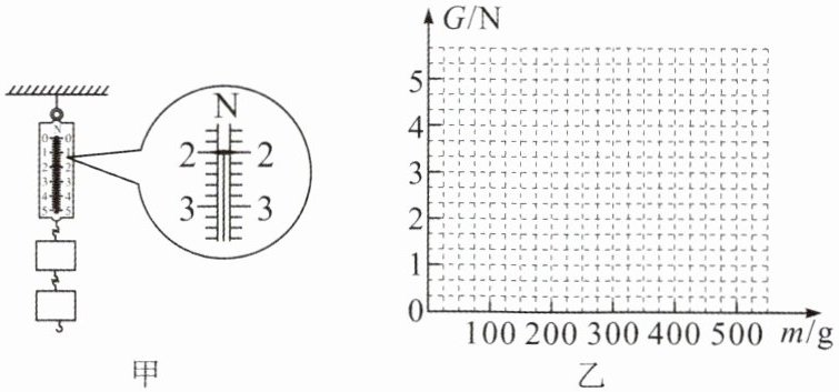 (2) 根据表格中的实验数据,在图乙中画出重力与质量的关系图像。