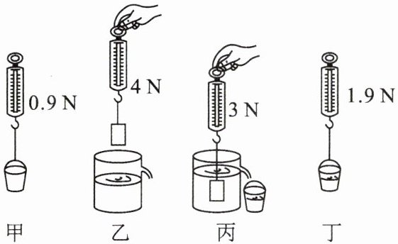 10. 如图是“探究浮力的大小与排开的水所受重力关系”的实验情景,请根据图示完成下面的填空。