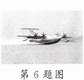 6. 如图所示是我国自主研制的首款大型水陆两栖飞机“鲲龙”AG600。某次执行任务时它的质量为 38 t,当它停在水面上时,排开水的体积是____$m^{3}$,受到的浮力为____N。(g 取 10 N/kg,$ρ_{水}= 1.0×10^{3}kg/m^{3}$)