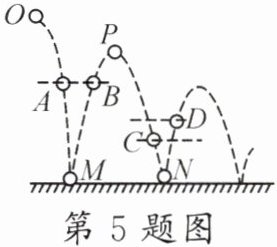 5. 将皮球从离地某一高度O点处水平抛出,球落地后又弹起,它的部分运动轨迹如图所示。下列说法正确的是()