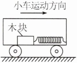 4. 如图所示,在平直路面上向右匀速行驶的小车中,有一轻质弹簧的一端固定在车厢右壁,另一端连接至小车底板上的木块上,弹簧此时处于原长状态并保持水平。下列判断正确的是()