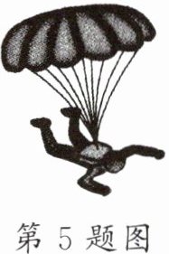 5. 极限跳伞是一项惊险的体育运动。如图所示,跳伞员从3600m高空跳下,一段时间后打开降落伞,开始做减速运动。减速下降时,跳伞员及降落伞所受的阻力______(选填“大于”“等于”或“小于”)跳伞员及降落伞所受的重力。若跳伞员看到地面“迎面扑来”,则他是以______为参照物的。若从跳下到落地用时200s,则其下落的平均速度为______m/s。
