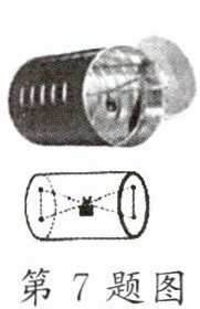7. 如图所示,在一个金属罐的盖和底各开两个小洞。将小铁块用细绳绑在橡皮筋的中部穿入罐中,橡皮筋两端穿过盖和底的小洞并固定起来,使小铁块悬于罐体内。做好后将罐子从不太陡的斜面滚下,罐子和小铁块的动能会转化为橡皮筋的______,滚动一段时间后罐子停下来,然后再沿斜面向上滚动,此时罐子的重力势能会______(选填“增大”“减小”或“不变”)。