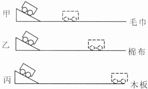 8. 小秋为探究“运动与力的关系”,设计了如图的斜面实验。让同一小车滑到接触面分别为毛巾、棉布和木板的水平面上,观察小车在水平面上滑行的距离。