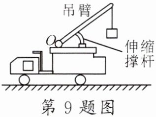 9. 如图所示是吊车起吊货物的结构示意图,伸缩撑杆为圆弧状,工作时它对吊臂的支持力始终与吊臂垂直,使吊臂绕O点缓慢转动,从而将货物提起。下列说法正确的是 ()