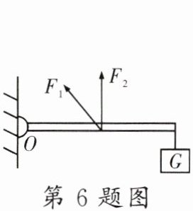 6. 如图所示,O为杠杆的支点,杠杆右端挂有重为G的物体,杠杆在力$F_{1}$的作用下在水平位置平衡。如果用力$F_{2}代替力F_{1}$,使杠杆仍在水平位置保持平衡,下列关系中正确的是 ()