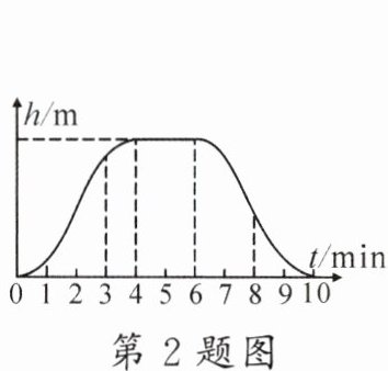 2. (多选)在某次下潜中,若从潜水器刚好浸没开始计时,到返回水面结束计时,下潜深度$h随时间t$的变化关系如图所示。忽略海水密度变化和潜水器的形变,下列对潜水器分析正确的是()