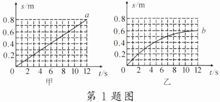1. 重力相同的$a$、$b$两件货物在两台吊车钢索的牵引下竖直向上运动,它们运动的$s - t$图像分别如图甲、乙所示,则在图像描述的运动过程中()