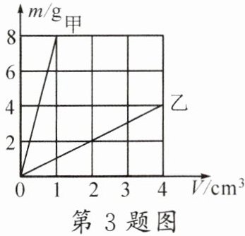 3. 用两种物质分别制成棱长相同的实心正方体甲、乙,它们的质量和体积的关系如图所示。把它们平放在水平地面上,则它们对水平地面的压强之比$p_{甲}:p_{乙}$为()