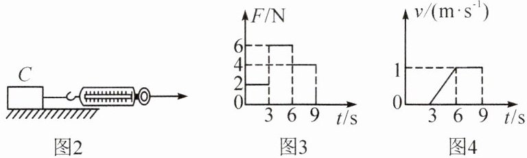 (5) 实验拓展:如图2所示,放在水平地面上的物体C受到方向不变的水平拉力F的作用,F-t和v-t图像分别如图3、4所示。则物体C在第4s时受到的摩擦力大小为______N。