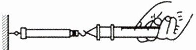 步骤一:把注射器的活塞推至注射器筒的底端,然后用橡皮帽封住注射器的小孔。