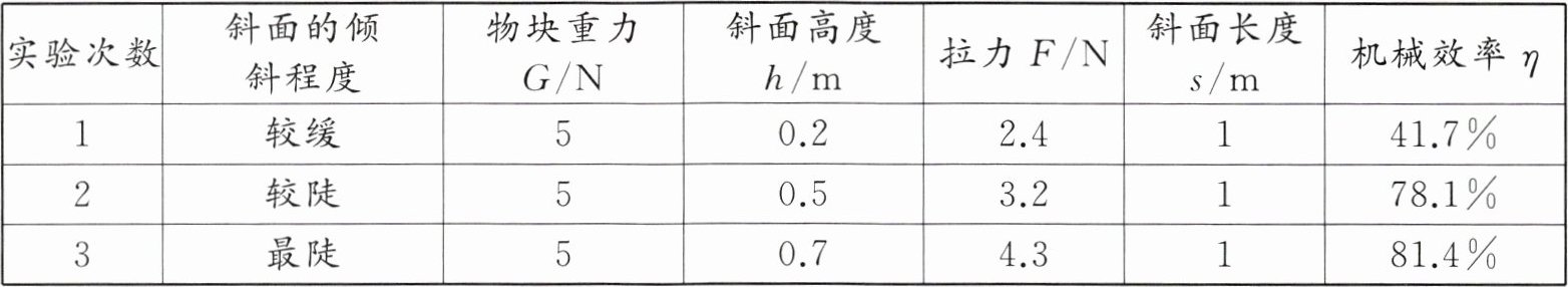16. 某实验小组的同学们在探究“斜面的机械效率”实验时,用弹簧测力计沿斜面匀速向上拉动物块,收集了下表中的实验数据。
