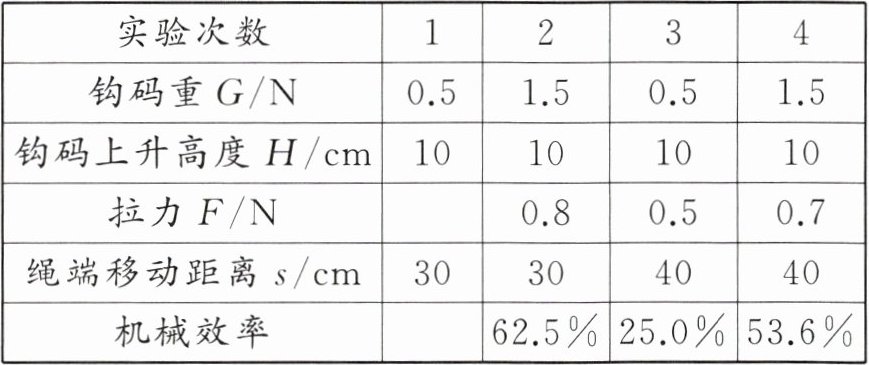 (1) 根据表中数据可以判断出第1次实验所选择的是______(选填“甲”或“乙”)滑轮组。