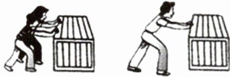 7. 如图所示,两个小孩各用 20N 的力能推动一个木箱,一个大人用 40N 的力能推动一个相同的木箱,由此可知,一个大人的力作用产生的效果跟两个小孩的力共同作用产生的效果______。大人的力相当于______(选填“合力”或“分力”),每个小孩的力相当于______(选填“合力”或“分力”)。