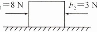 9. 如图所示,一物体放在粗糙的水平地面上,当受到水平力$F_{1}= 8N和F_{2}= 3N$的作用时,物体处于静止状态(即所受合力为零),此时物体受到的摩擦力为______N,方向______;如果将$F_{1}$撤去,此时物体所受合力为______N。