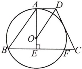 因为$AD// BC$,$AE\perp BC$,所以$OA\perp AD$。
