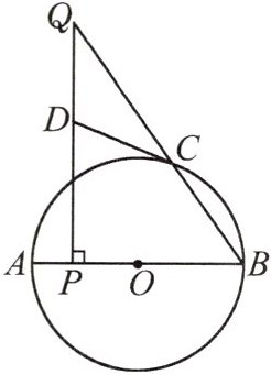 1. 如图,AB 是⊙O 的直径,点 C 在⊙O 上,P 是直径 AB 上的一点(不与点 A,B 重合),过点 P 作 AB 的垂线,交 BC 的延长线于点 Q,在线段 PQ 上取一点 D,连接 DC,使 DQ = DC。试判断 CD 与⊙O 的位置关系,并说明理由。