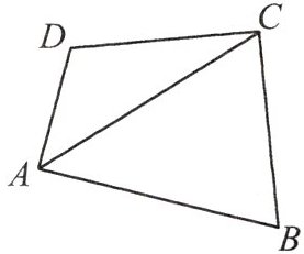 3. 如图,四边形 ABCD 的边 CD 和 BC 的长是关于 x 的方程 $\frac{1}{2}x^2 - (m + 2)x + (2m^2 - m + \frac{7}{2}) = 0$ 的两个实数根,∠DAB = ∠DCB = 90°,AD = 2,求 AC 的长。