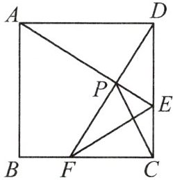 因为$\angle DAE+\angle AED = 90^{\circ}$,所以$\angle CDF+\angle AED = 90^{\circ}$,则$\angle DPE = 90^{\circ}$,即$AE\perp DF$。