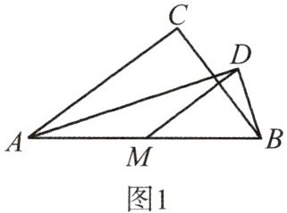 在$\triangle ADB$中,$MA = MD$,所以$\angle MAD=\angle MDA$;$MB = MD$,所以$\angle MBD=\angle MDB$。