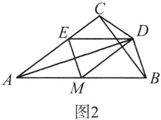 (2) 如图 2,已知 E 是边 AC 上一点,且满足 ME⊥AD,DE//AB,连接 CD。求证:BD = CD。